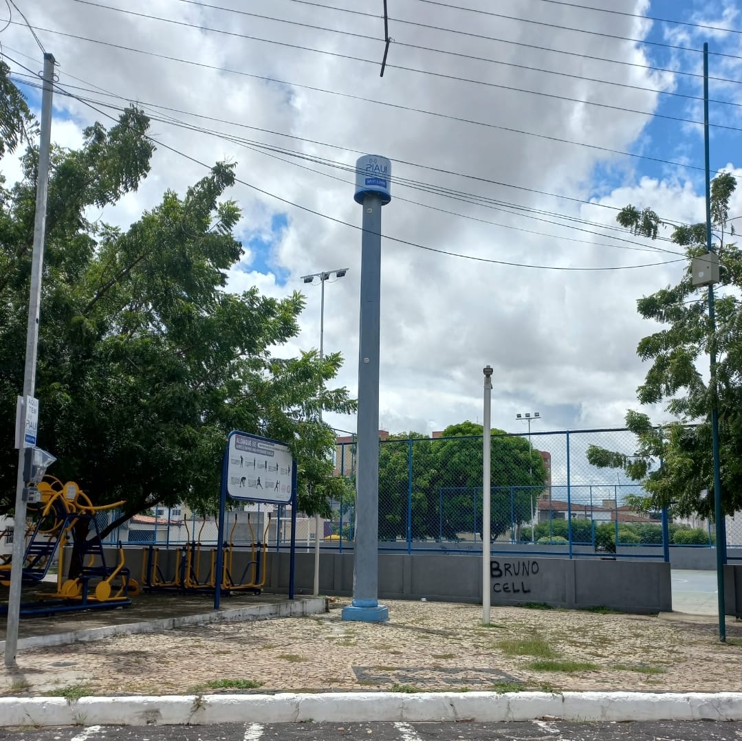 Esta torre que tentei me conectar fica localizada na praça do Conjunto Residencial João Emílio Falcão no Cristo Rei. Desértica a praça. E aí entra a questão da segurança. Quem se arriscaria a ficar aí navegando na net e ser vítima de um assalto? Ninguém por certo.