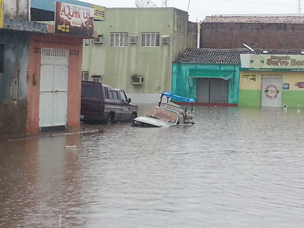O centro comercial da cidade de São Raimundo Nonato (525 km de Teresina), ficou completamente alagado neste sábado (19) após três horas de chuva.