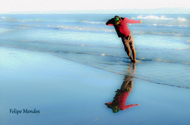 Pescador puxa o barco para a praia (Foto: Felipe Mendes)