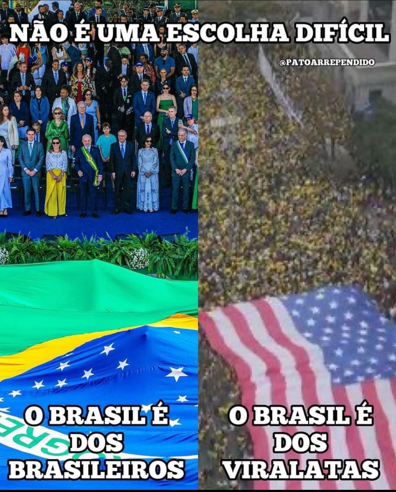 Eu estou besta com essa bandeira estadunidense na manifestação (7 de Setembro). Foi uma confissão gigantesca de desprezo pela soberania do Brasil. Foi um grito coletivo : “Queremos dependência dos EUA!”