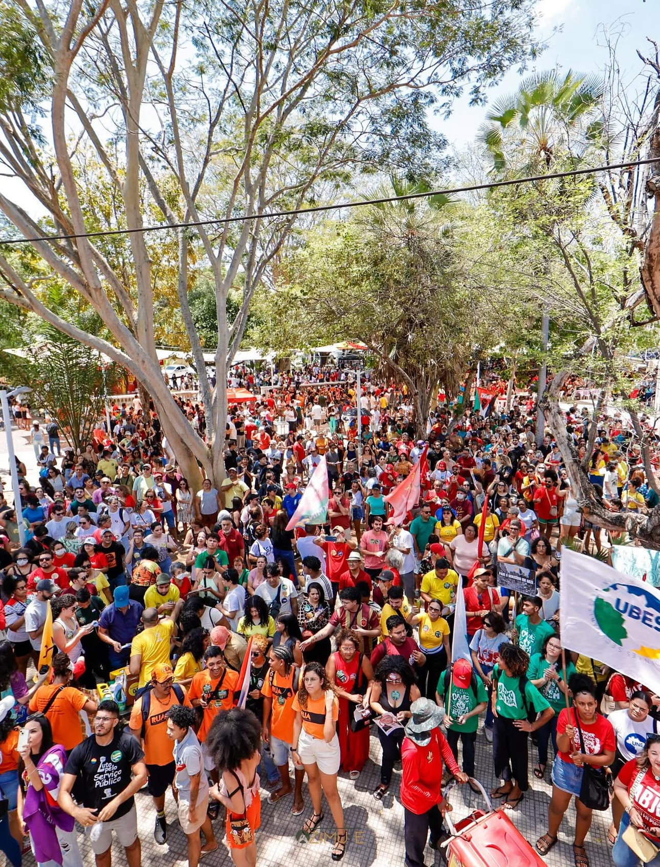 A concentração começou por volta das 9h na Praça Pedro II e reuniu manifestantes de diferentes setores da sociedade.