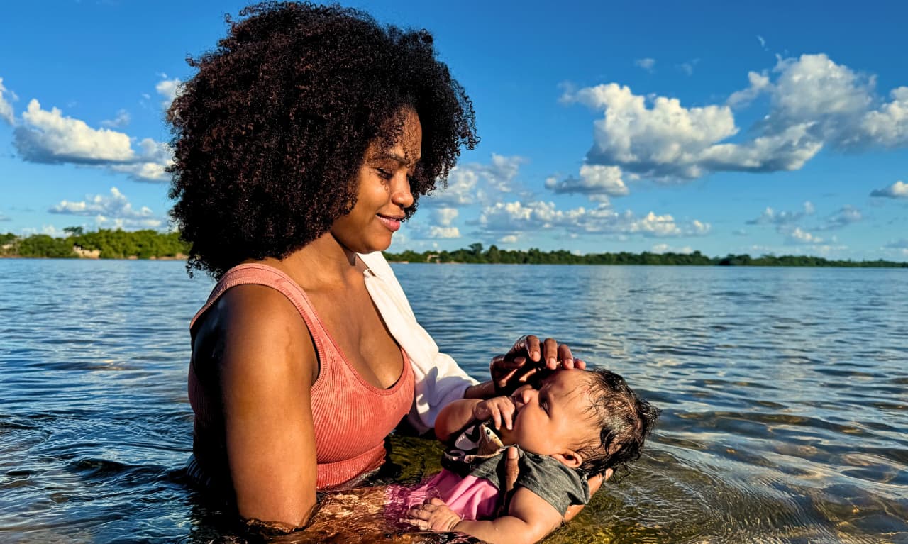 Uma mãe, um filho, um rio, o firmamento.