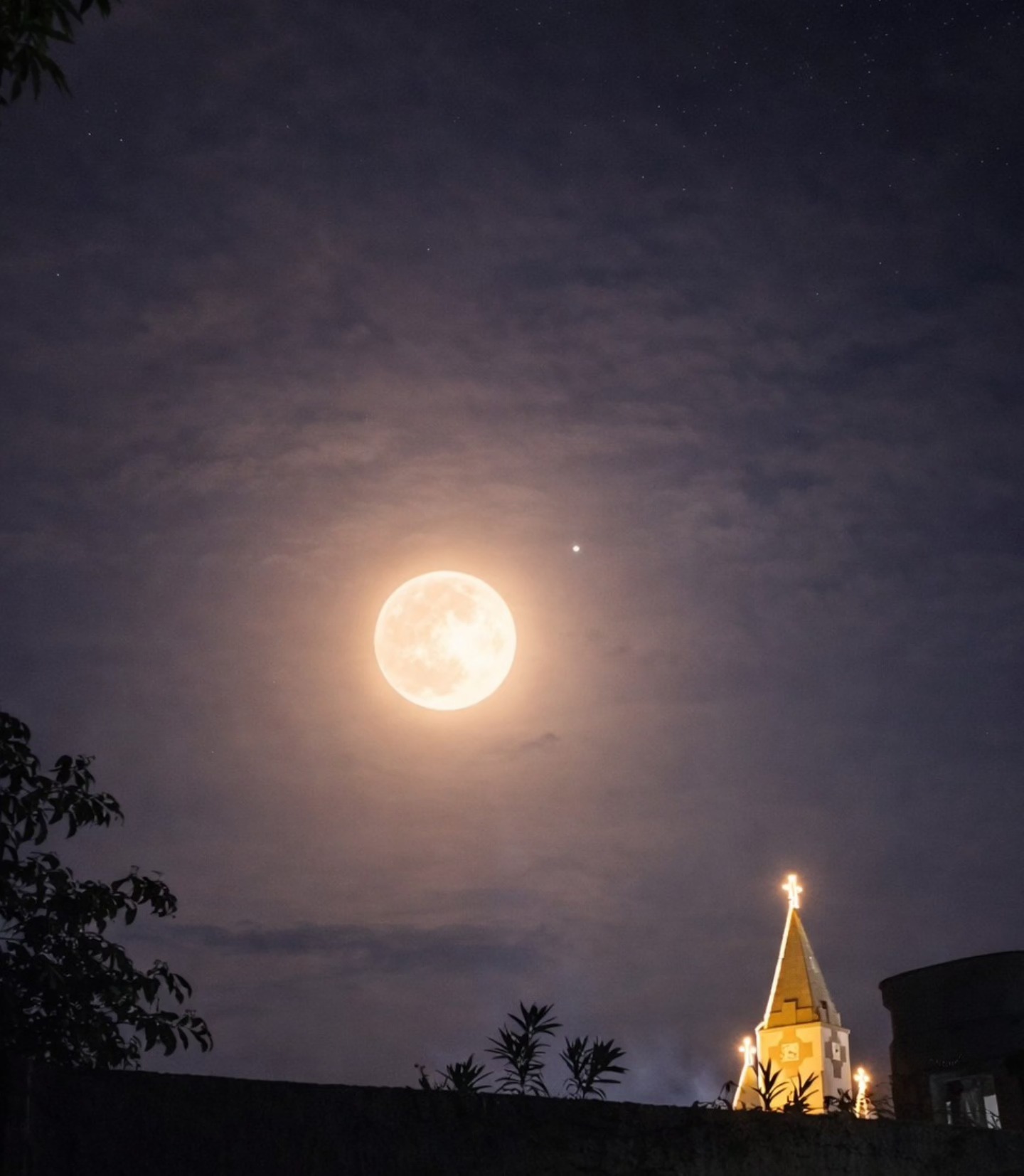 O céu e a torre da Matriz de São Gonçalo em perfeita harmonia sobre Regeneração-PI.