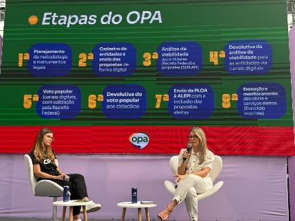 Durante o painel, a diretora apresentou a metodologia do programa, os avanços ao longo das edições e os impactos diretos nas comunidades. O OPA permite que a população indique, vote e acompanhe obras e serviços, fortalecendo a transparência e a democracia participativa.