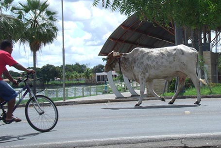 Animais são registrados disputando espaço com a população em Campo Maior. Porcos, vacas e jumentos são vistos por toda cidade. Eles têm trânsito livre e são atraídos pelo mato.