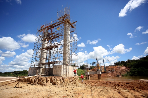 As pilastras da ponte sobre o rio Poti estão sendo concretadas e a terraplenagem está sendo intensificada.