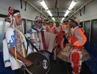 Ir e voltar do trabalho costuma ser uma rotina estressante para a maioria das pessoas. Mas nesta sexta-feira (07) essa atividade ficou mais divertida para algumas pessoas. É que a Prefeitura de Teresina, através da Fundação Cultural Monsenhor Chaves, levou uma comitiva junina para fazer um passeio de metrô junto com os passageiros.