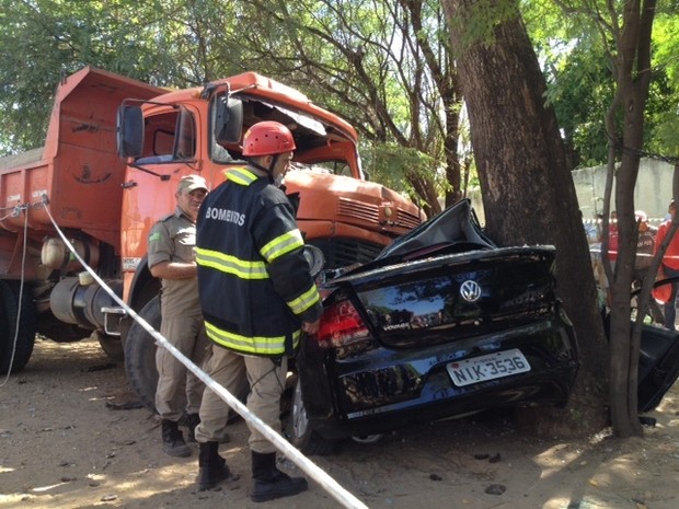 Cinco pessoas ocupavam o Voyage que havia saído de Palmeirais com destino a Teresina. O motorista, identificado como Márcio Barbosa Oliveira, e o passageiro da frente morreram no local. As três pessoas feridas foram levadas para o Hospital de Urgência de Teresina (HUT). O motorista do caminhão caçamba fugiu do local.