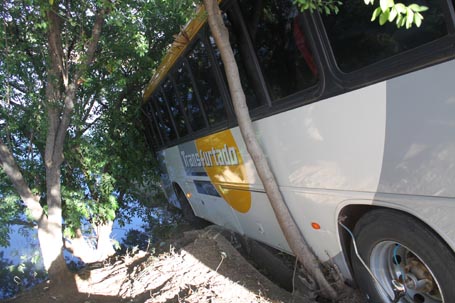Por sorte, o ônibus desceu a avenida Joaquim Ribeiro, subiu a rotatória na avenida Maranhão e ao seguir em direção ao rio foi parado por uma árvore e um poste. Ficando preso para não cair no rio.