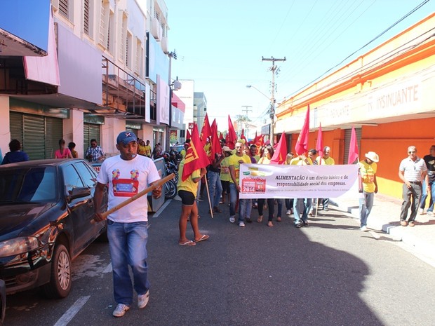 Manifestação do Sindicato dos Comerciários de Teresina (Foto: Gil Oliveira/ G1 PI)